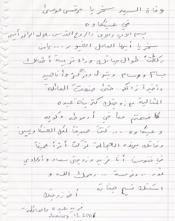 بـالـم وحـزن عميقيـن تـلقيـنــا نبـا وفـاة هـذا الانسـان المكـافـح والـوديـع والـودود الـذي احبـه واحتـرمـه كـل مـن عـرفـه لاستقـامتـه في الحـيـاه وطيـب معشـره، كـان الله في عـون زوجتـه