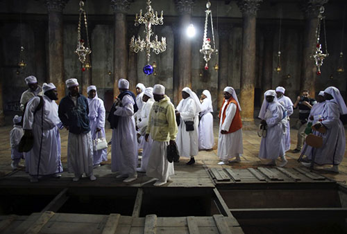 حجاج نيجيريون داخل كنيسة المهد - رويترز
