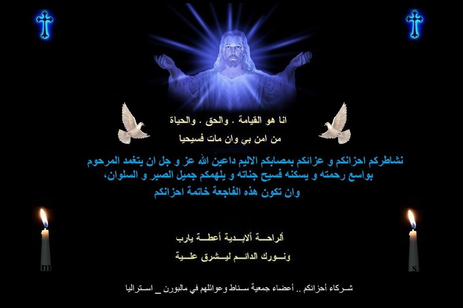 نشارككم احزانكم ونقدم لكم التعازي داعين سيدنا يسوع المسيح ان يرحم على الفقيد
