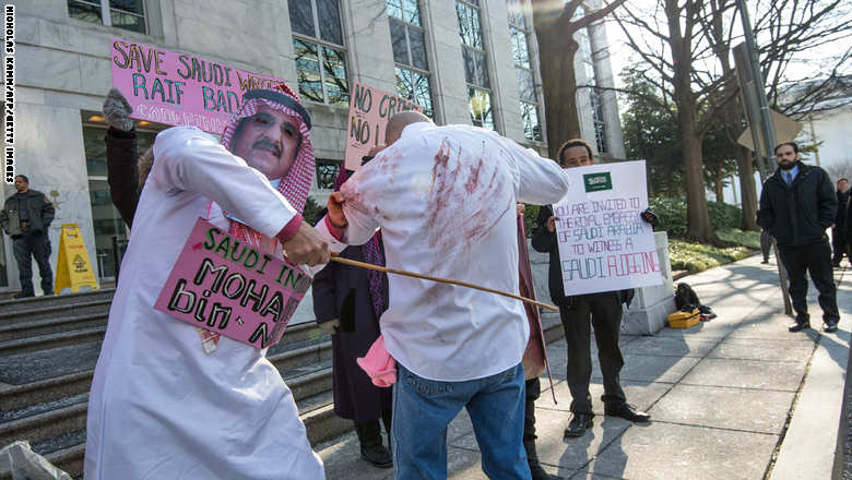 وقالت إنصاف حيدر، زوجة رائف بدوي لـ CNN عبر الهاتف من كويبك بأن زوجها لم يتلق الخمسين جلدة التي كانت من المتوقع أن يتلقاها اليوم. وأضافت أن أسبابا طبية منعت من تنفيذ الجلد اليوم، ولكنها توقعت أن تتواصل عملية الجلد يوم الجمعة المقبل.