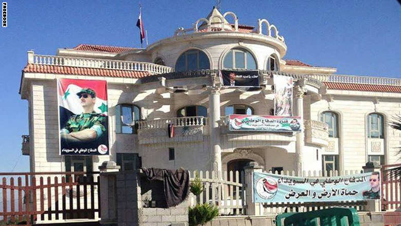 دمشق، سوريا (CNN) -- نشر الإعلامي السوري، فيصل القاسم، صورة لمنزله في منطقة السويداء السورية، بعد سيطرة قوات النظام السوري عليه ردا على مواقفه المعارضة للسلطات، وظهر المنزل وهو يحمل صورة كبيرة للأسد باللباس العسكري، إلى جانب شعارات مؤيدة للنظام، وقال الإعلامي إن منزله تحول إلى "ثكنة عسكرية قذرة."